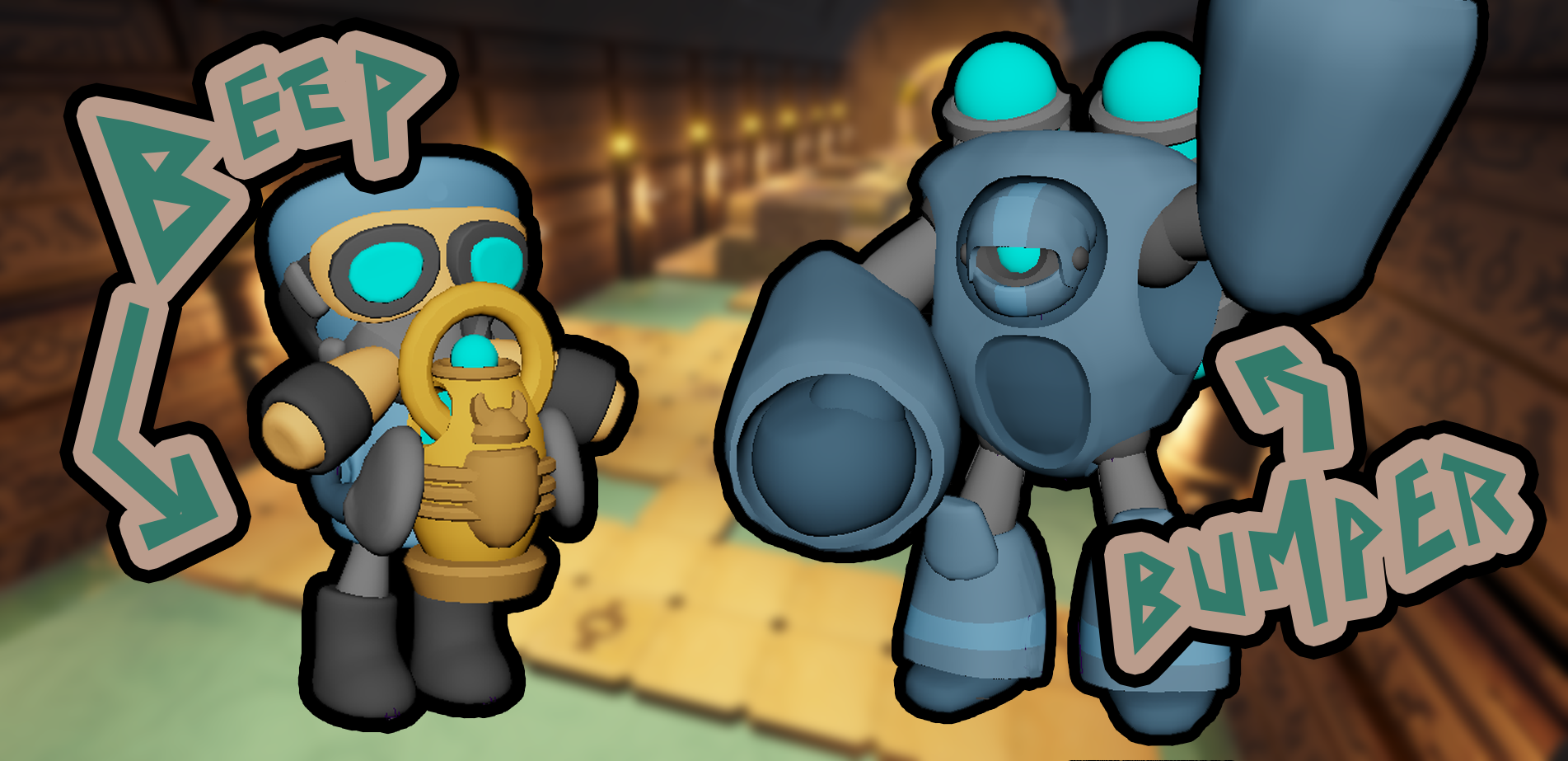 Bumper, beep’s brother was dying. Beep saved him by integrating his body into a mech. The technology can only contain his soul for a limited time. Navigate together through the ancient crypt and find the Soul Keeper artifact to restore his essence.